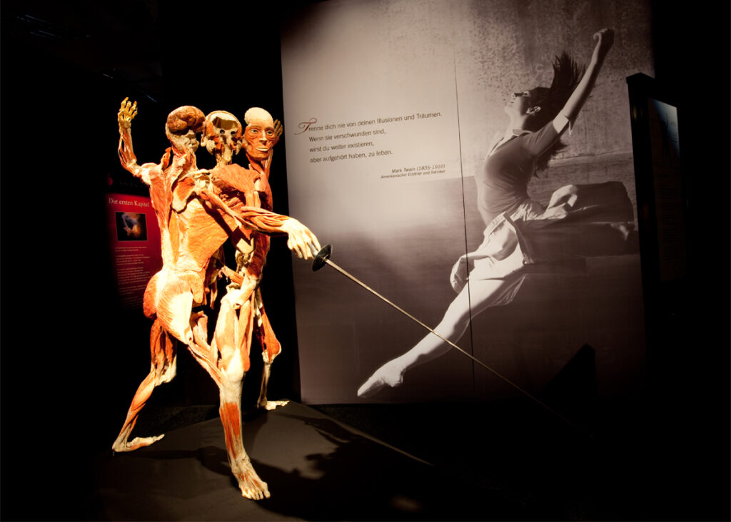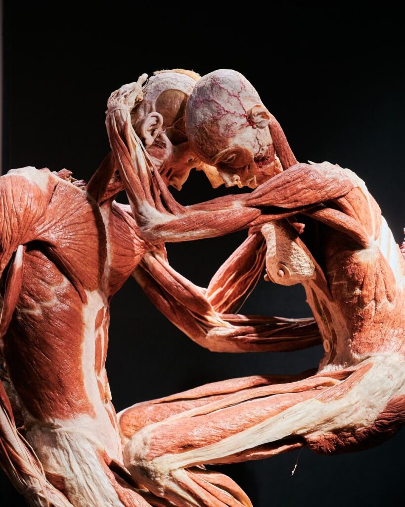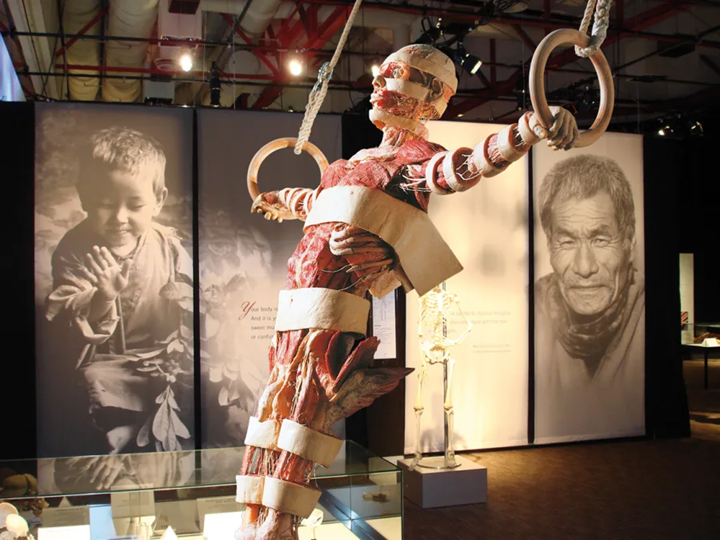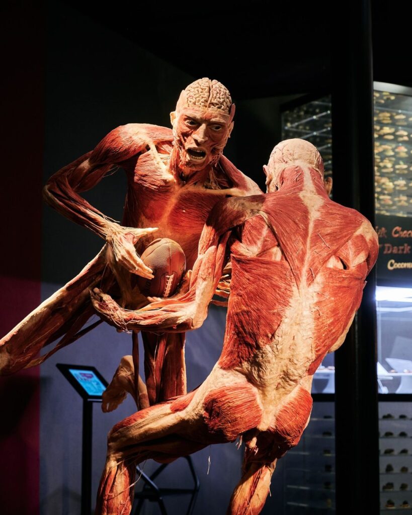 Created by Dr. Gunther von Hagens, the Body Worlds exhibition uses a technique called plastination to preserve real bodies and organs donated for educational purposes.